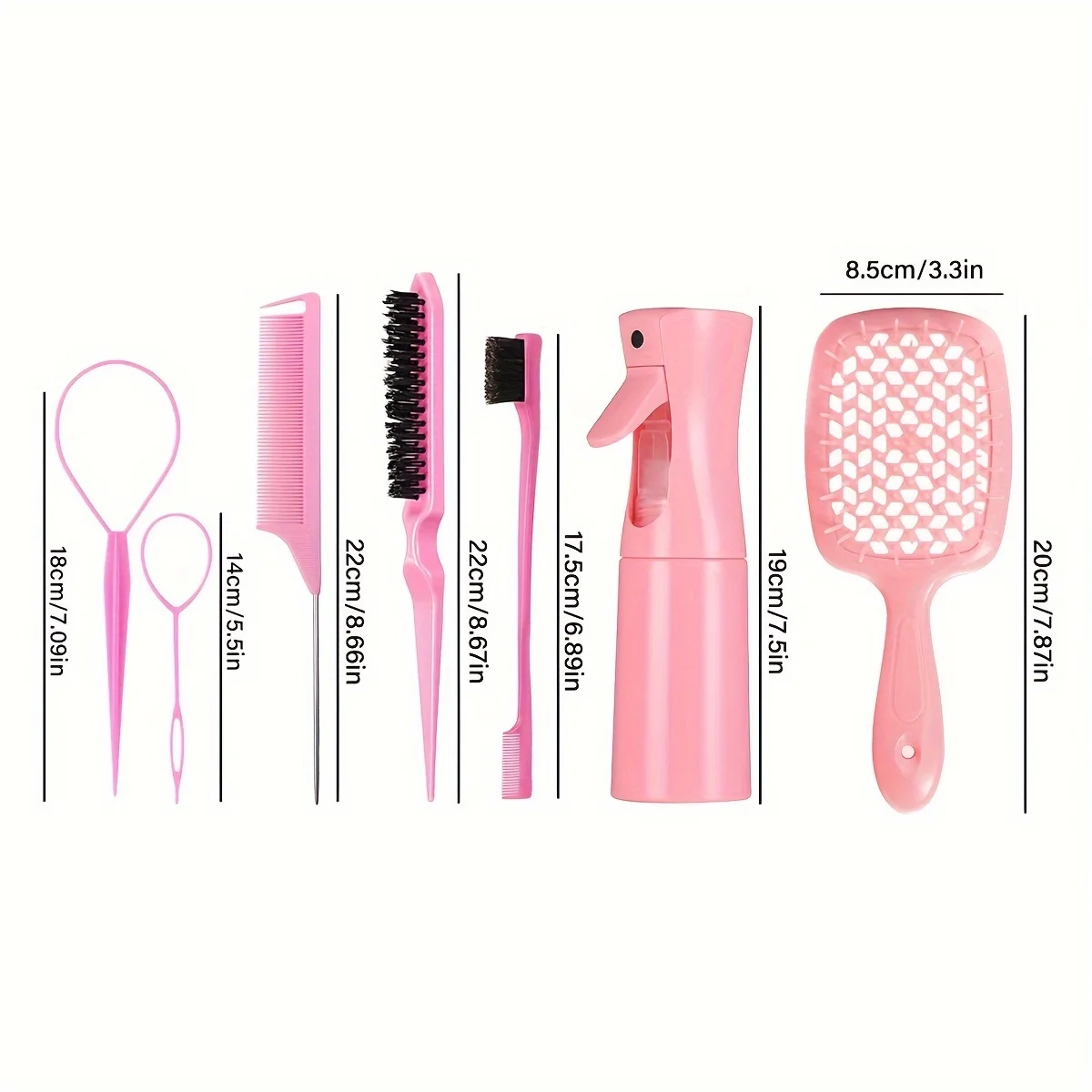 【Conjunto de escova de cabelo perfeito】Nosso conjunto de escova de cabelo 7 em 1 inclui: 1 escova de cabelo desembaraçadora, 1 escova de cabelo de cerdas, 1 escova de ponta dupla com gancho, 1 massageador de couro cabeludo, frasco de spray de cabelo de 6,7 oz / 200 ml. 2 ferramentas de cabelo Topsy Tail Hair, ferramenta de rabo de cavalo, laço de ferramenta de trança francesa, este conjunto é essencial para obter estilos de cabelo bonitos sem esforço com facilidade
